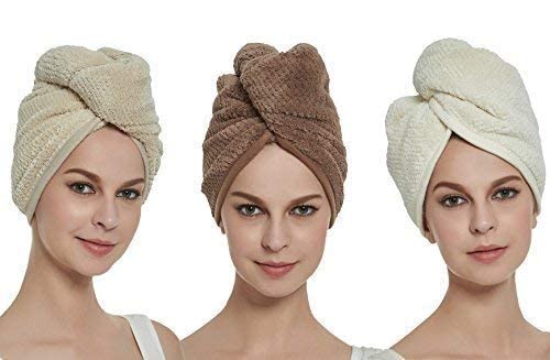 Hopeshine Hair twist telo doccia asciugamani in microfibra capelli turbante Wrap asciugatura rapida tappo per donne, Microfibra, Brown+Khaki+Off White 3-Pack, 63cm X 24cm