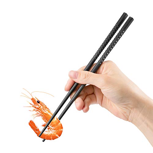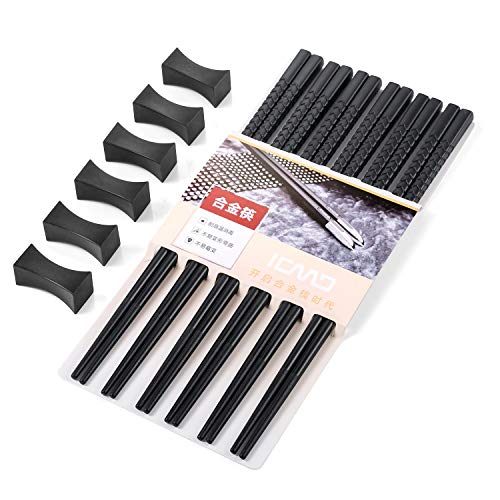 Hopewey Bacchette nere 6 paia + 6 bacchette nere giapponesi Chopsticks cinesi bacchette in metallo, bacchette antiscivolo per ristorante