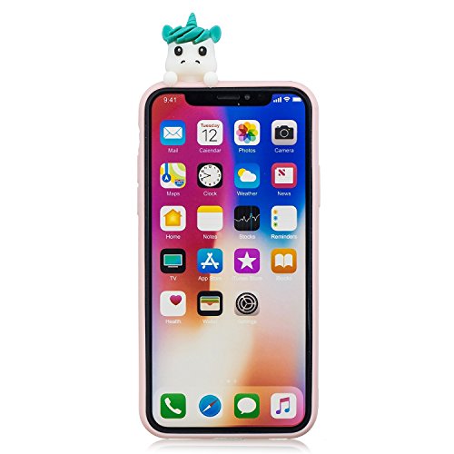 HopMore Compatibile con Cover iPhone X/iPhone XS Silicone Disegni 3D Divertenti Fantasia Gomma Morbido Custodia iPhone X Antiurto Protettiva Slim TPU Case Bumper Molle Caso - Unicorno Rosa