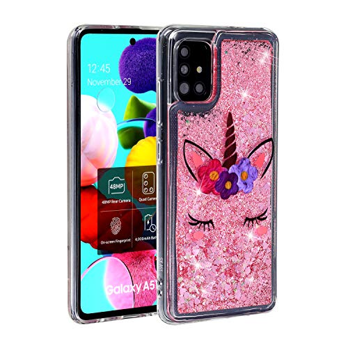 HopMore Compatibile con Cover Samsung Galaxy A71 Brillantini Silicone Morbido Trasparente Disegni Bella 3D Custodia Morbide Trasparenti Brillante Glitter Antiurto Case Bling Protettiva - Unicorno