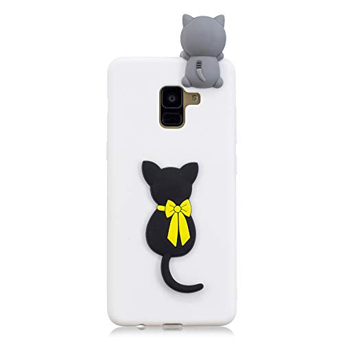 HopMore Compatibile con Cover Samsung Galaxy A8 2018 Silicone Disegni 3D Panda Animal Divertenti Fantasia Gomma Morbido Custodia Samsung A8 2018 Antiurto Protettiva Case Molle Caso - Gatto Nero