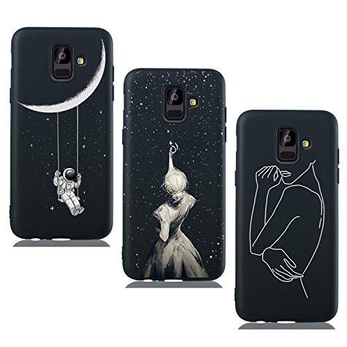 HopMore 3X Compatibile con Cover Samsung Galaxy A6 Plus 2018 Silicone Morbide Nero Disegni Astronauta Ragazza Bella Custodia Antiurto Gomma Accessori Telefoni Case TPU Morbido - Design Astronaut
