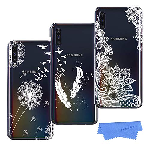 HopMore 3X Compatibile con Cover Samsung Galaxy A30S / Galaxy A50 Silicone Morbido Trasparente con Disegni Belle Custodia Trasparenti Custodie Antiurto Protettiva - Dente di Leone Fiore Bianco