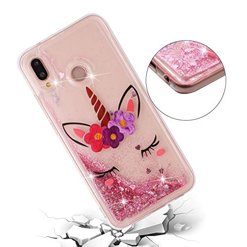 HopMore Cover per Huawei P20 Lite Silicone Morbido Brillantini Trasparente con Disegni Belle Custodia Trasparenti Morbide Antiurto Case Protettiva Brillante Glitter - Unicorno