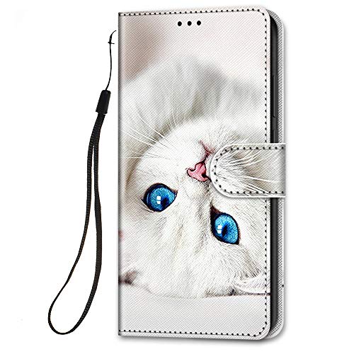 HopMore Cover a Libro per Samsung Galaxy S21 Plus / S30 Plus Cover in Pelle con Silicone Morbido Custodie Disegni Custodia Pelle Antiurto Accessori Portafoglio Leather Wallet Case - Gatto Bianco