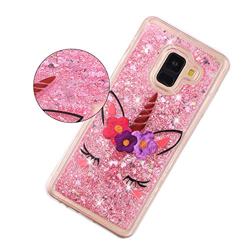 HopMore Cover per Samsung Galaxy A8 2018 Silicone Morbido Brillantini Trasparente con Disegni Belle Custodia Trasparenti Morbide Antiurto Case Protettiva Brillante Glitter - Unicorno