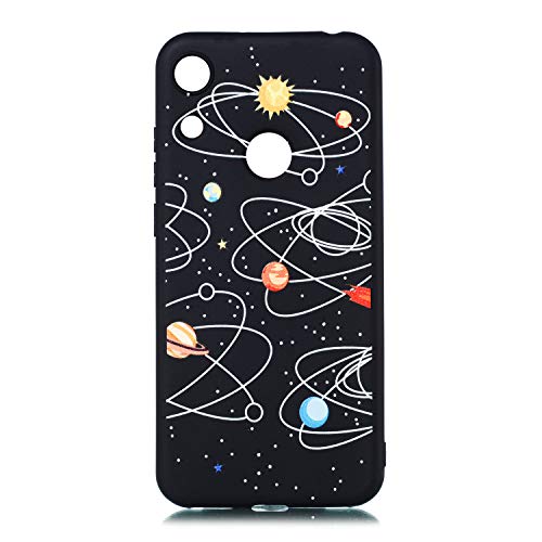 HopMore 3X Custodie Cover per Honor 8A / Huawei Y6 2019 Silicone Morbide Nero con Disegni Spazio Astronauta Kawaii Custodia Antiurto Gomma Accessori Telefoni Case Morbido Caso Protettiva - Design A