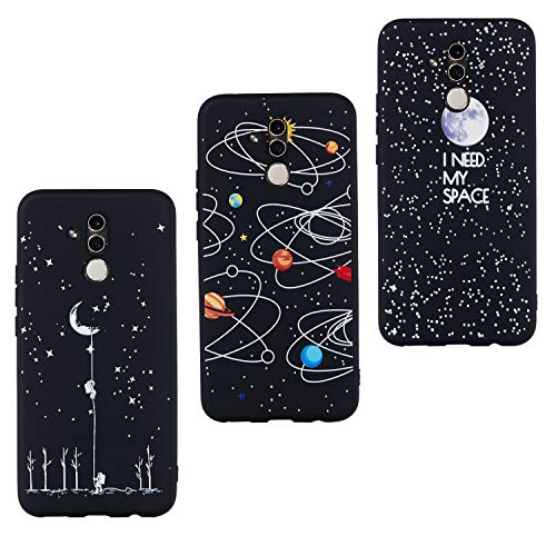 HopMore 3X Custodie Cover per Huawei Mate 20 Lite Silicone Morbide Nero con Disegni Eefante Spazio Astronauta Kawaii Custodia Antiurto Gomma Accessori per Telefoni Case Morbido Caso Protettiva - A