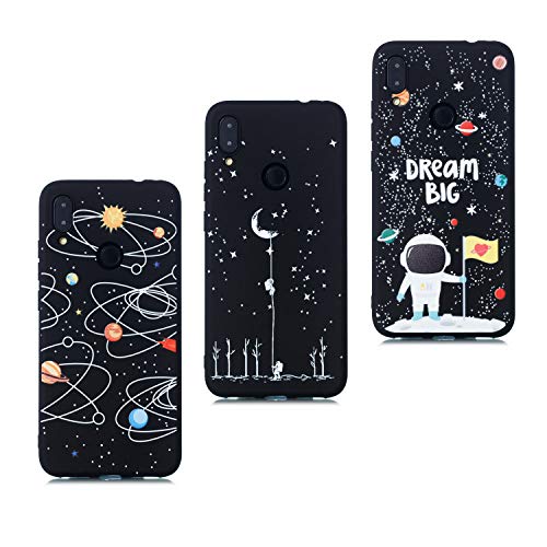 HopMore 3X Custodie Cover per Xiaomi Redmi Note 7 / Note 7 PRO Silicone Morbide Nero con Disegni Spazio Astronauta Custodia Antiurto Gomma Accessori Telefoni Case Morbido Protettiva - Design D