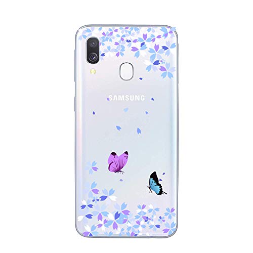 HopMore 3X Silicone Cover per Samsung Galaxy A40 2019 Morbido Trasparente con Disegni Panda Fiore Belle Custodie Samsung A40 Trasparenti Antiurto Case Slim Protettiva Caso Molle - Fiore Farfalla Rosa