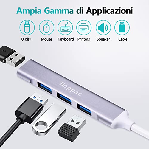 Hoppac Hub USB 3.0, 4 in 1, Multipresa Con 3 Porte USB 2.0 ed 1x 3.0, sdoppiatore Corpo in Metallo, Multipla, Per Il Trasferimento Dei Dati, Collega E Usa
