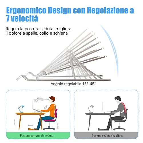 Supporto Computer Regolabile:7 posizioni regolabili per regolare la postura seduta e migliorare il dolore al collo e alla schiena.