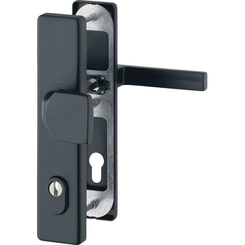 Targhetta interna (mm): 54 x 250 x 10, targhetta esterna (mm): 54 x 250 x 15, classe secondo EN 1906: 3, test ignifugo: ÖNORM B3859, test: RC3 secondo EN 1906, accessori di fissaggio: viti filettate M6, dimensioni (mm): bottone: 83 x 52