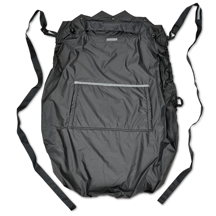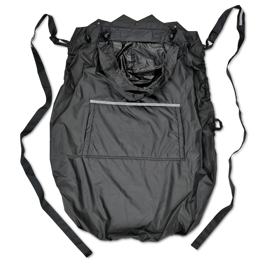 Non importa quale sia il tempo: Il parapioggia in nylon non è solo resistente alle intemperie, ma anche la protezione perfetta nella stagione buia grazie ai riflettori Scotchlite™. Potete anche usarla come aggiunta alla copertura base - la scelta è vostra! La borsa per il trasporto è integrata. NON sostituisce il marsupio, ma è la combinazione perfetta! Dettagli del prodotto: Facile fissaggio Pratico cappuccio regolabile per il tuo bambino Cordino regolabile su tutta la circonferenza per una adattamento ottimale Sempre ben visibile grazie ai riflettori centrali, sul cappuccio e sulle bretelle. Materiale struttura: Nylon antivento e idrorepellente Lavabile fino a 40 °C. Solo in ciclo delicato, nessun ammorbidente, nessuna rotazione. Rimuovere lo sporco leggero con un panno.