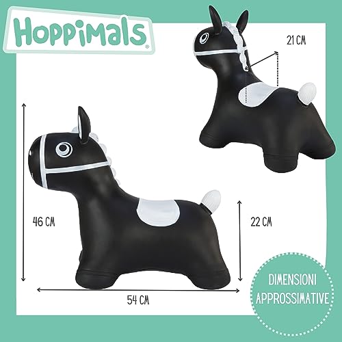 Hoppimals Space Hopper Cavallo Gonfiabile per Bambini di età Pari o Superiore a 12 Mesi - Imballo con Confezione Regalo, Pompa Inclusa - Cavalcabile Bambino, Palla rimbalzante per Bambini - Nero