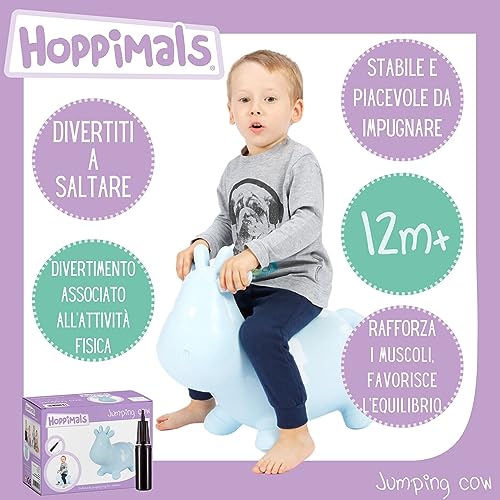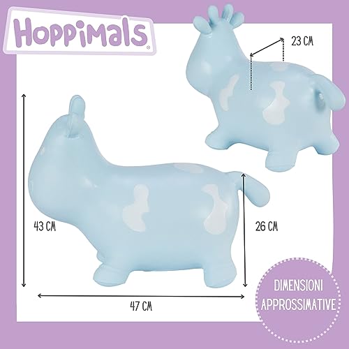 Hoppimals Space Hopper Mucca Gonfiabile per Bambini di età Pari o Superiore a 12 Mesi - Imballo con Confezione Regalo, Pompa Inclusa - Cavalcabile Bambino, Palla rimbalzante per Bambini - Blu