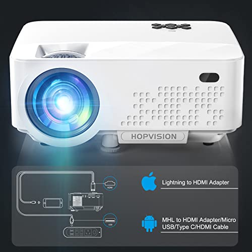 HOPVISION Mini Proiettore 1080P Full HD,Video Proiettore Portatile 6500 Lumen con Display da 240”,Proiettore LCD per 90000 ore,Compatibile con HDMI/AV/USB/VGA