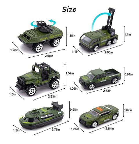 HorBous Army lega modelli di veicoli Giocattoli auto, mini esercito giocattolo Serbatoio, Jeep, Panzer, camioncini, Ecc 6 pezzi impostare la scala del modello dell'automobile 1:64 (camion militari)