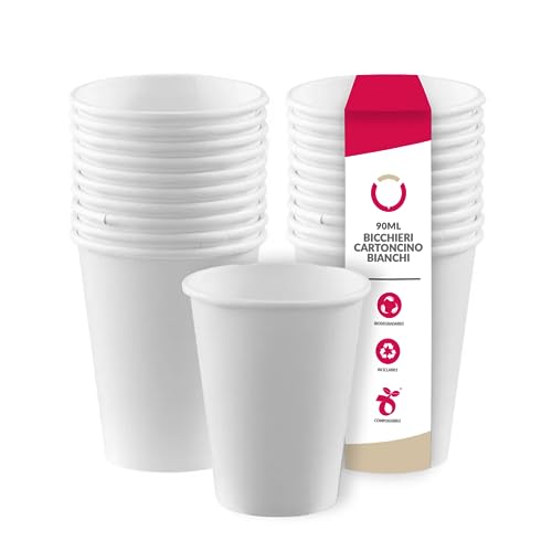 DOT Horeca Solutions 100 BICCHIERINI CAFFE' bianchi cartoncino 90 ML carta CON COPERCHI PET monouso usa e getta caffè espressino bicchiere bianco delivery asporto coperchio riciclabili bicchieri