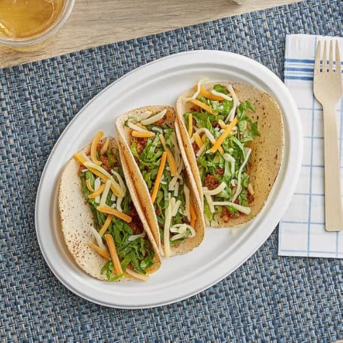 DOT Horeca Solutions 50 Piatti piani OVALI bianchi carta bagassa 26x20 CM usa e getta monouso piatto ovale polpa di cellulosa biodegradabili compostabili riciclabili bio | bianco canna da zucchero