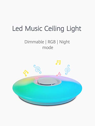 Horevo Lampada da Soffitto 24W Rainbow LED con Telecomando, Altoparlante Bluetooth e Controllo APP, 2000LM 6500K Bianco Caldo/Bianco Freddo, Lampada Dimmerabile per Soggiorno, Camera da Letto