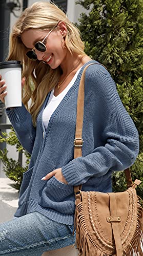Hormtaer Maglione Donna Cardigan Casual Oversize Manica Lunga Tops Maglione Maglione Donna Pullover Maglia Cappotto (Blu, S)