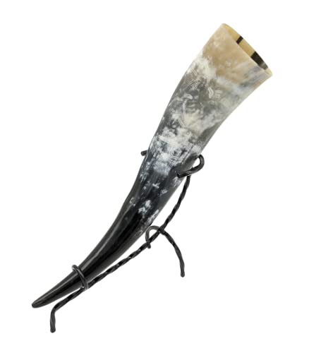 Hornerey Trinkhorn T05S Vichingo da 0,5 l con Supporto in Ferro battuto, Vero Corno Medievale, metorno, Larp, Bere