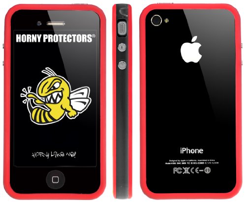 Horny Protectors - Cover Bumper con bottoni in metallo per Apple iPhone 4, Rosso/Nero
