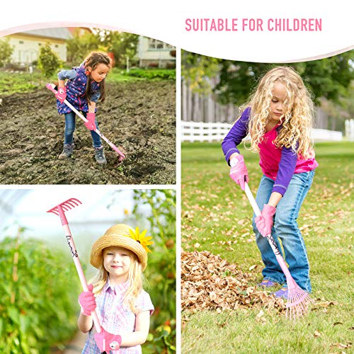 Hortem Gli Strumenti di Giardinaggio per Bambini includono Strumenti Lunghi in Metallo con Testa di Fenicottero 3D, Pala, Zappa, rastrello e Attrezzi da Giardino, Guanti da Giardino per Bambini
