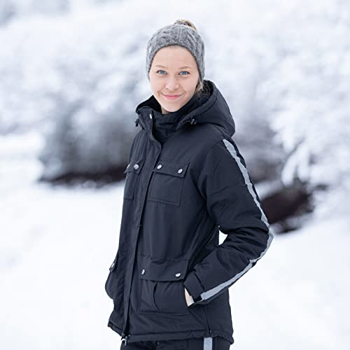 Pratica: la classica giacca da equitazione invernale ha un taglio lungo e dispone di una cerniera a 2 vie e di un bottone a pressione per renderla comoda da indossare