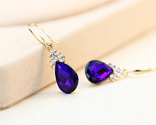 Hosaire, collana con ciondolo e orecchini a goccia con diamante trasparente, Blue, 1