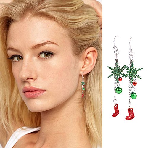 Hosaire - 1 paio di orecchini pendenti, con campanelle, bijoux natalizio, da donna