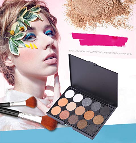 Hosaire Palette di ombretto Impermeabile Durevole Matte Shimmer Mat Trucco Palette Shimmer 15 Colori Set di Spazzola M Colori Assortiti n.1
