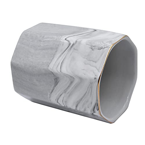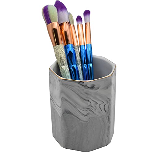 Hoshen - Portapenne in ceramica con texture marmorizzata per trucchi, ideale per l'uso quotidiano in ufficio, aule e case, colore: grigio