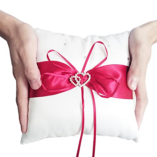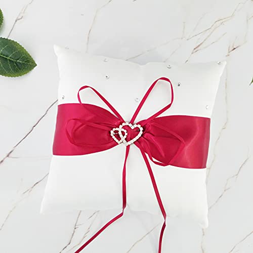 Design raffinato: il nostro cuscino ad anello è bianco tutt'intorno, con un nastro rosso al centro, con un doppio cuore di forme diverse. Con il cuscino per anelli, il tuo anello sarà ancora più radioso.