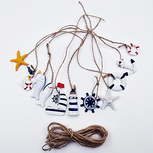 Abito di lusso: la nostra decorazione della sospensione marittima ha dieci stili diversi: timoniere, ancora, anello per nuotare, mini anello per nuotare, uccello per nuotare, faro, lenza, piccola barca a vela, stella marina gialla, stella marina bianca. Inoltre viene fornito con una corda di canapa lunga 4 metri.