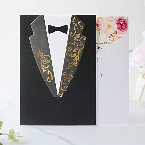 Hosmsua 20x inviti da matrimonio bianco e nero bronzante con sposo e sposa invito a nozze carte per festa di matrimonio, Trifold Inserts (20 pezzi)