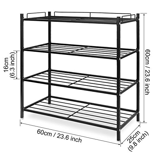 Hossejoy, Scarpiera in metallo resistente, robusta, organizer per scarpe a 4 livelli, stabile, ideale per ingresso, soggiorno, corridoio (60 x 25 x 60 cm), nero