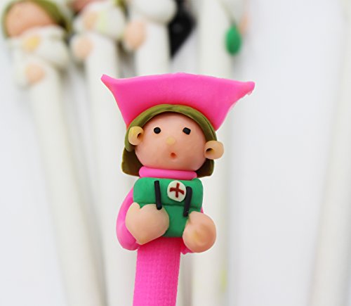 Hossty, confezione da 6 penne a sfera con punta da 0,5 mm e decorazione in fimo a tema medico e infermiere;