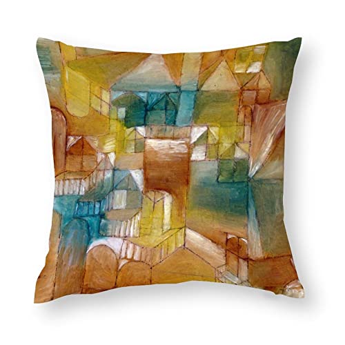 Design: i disegni della serie Paul Klee sono stampati su entrambi i lati di queste federe decorative. La stampa è vivida e chiara, difficile da sbiadire. I dipinti includono Fasçsade marrone-verde, giardino più fresco a secco, architettura rossa e verde e albero e architettura-ritmi.