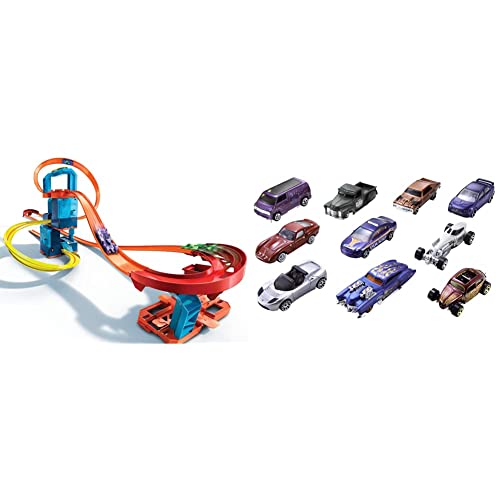Hot-Wheels- Track Builder Unlimited, Kit di Booster Sovrapponibili con Macchinina, Giocattolo per Bambini 6+ Anni, GWT44 + Set Macchinine da 10 Veicoli in Scala 1:64