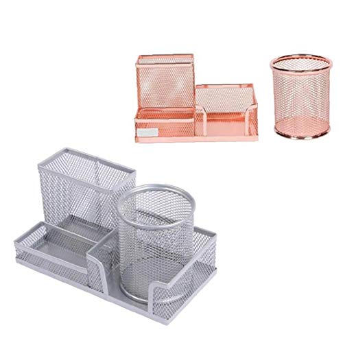 Hotaden Rete Metallica Desk Pen organizzatore Matita Coppa con 3 Supporto Scomparti per cancelleria School Office Supplies (Colore Casuale)