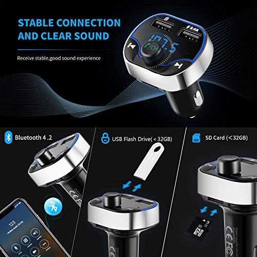【Modalità multi-musica e garanzia】 Questo trasmettitore offre 3 modalità per ascoltare la musica: Scheda SD e chiavetta USB (fino a 32 GB) Inoltre, offriamo un rimborso incondizionato di 2 mesi e una sostituzione gratuita di 12 mesi.