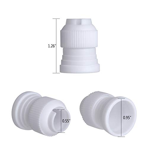 Questi accoppiatori bianchi sono lunghi 3 cm e il diametro della base è di 2,5 cm, adatti per ugelli di glassa di dimensioni standard.