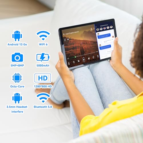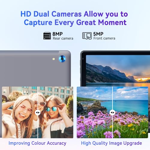 【Schermo da 10,1 Pollici 】: Con uno straordinario display HD 1280 x 800 da 10,1 pollici, le immagini prendono vita, il testo è nitido e i colori sono più vivaci. C'è anche una doppia fotocamera integrata da 8 MP e 5 MP sulla parte anteriore e posteriore per l'uso quotidiano, registrando ogni momento della tua vita.