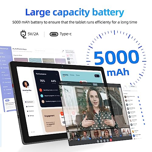 Tablet 10 pollici con batteria da 5000 mAh: Dotato di un display IPS da 10 pollici con ampio angolo di visione di 178° e una risoluzione HD di 1280 x 800, che garantisce la visualizzazione di colori e dettagli per una grafica di gioco straordinaria e una riproduzione video dettagliata. Dotato di una batteria da 5000 mAh, gestione intelligente dell'alimentazione AI e una durata della batteria fino a 4 ore.