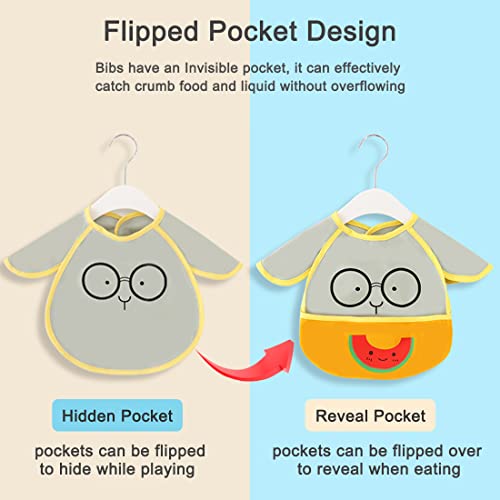 HOTLIKE Bavaglino con Maniche Impermeabile per Bambini, 3 Pezzi Bavaglini per Allattamento, Bavaglino Neonato, Set Bavaglini Pappa Svezzamento Grembiule con Tasca Lavabile per Giocare e Mangiare