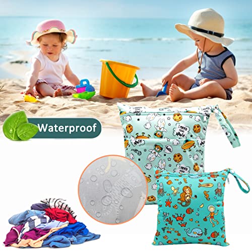HOTLIKE Wet Bag, Borsa per Pannolini Riutilizzabile 2-PCS Impermeabile Wetbag, Organizer per bambini, Porta Pannolini Lavabili Neonato, Sacchetto del Pannolino per Viaggi Spiaggia Gym (Verde)