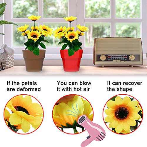 【Ideale per persone impegnate】I girasoli artificiali non appassiscono mai, possono rimanere vibranti e realistici per lungo tempo. Colorati e naturali, sono di facile manutenzione. Tutto quello che devi fare è pulire le foglie delle piante con acqua per rimuovere la polvere.