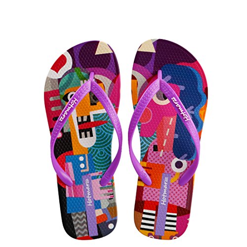 Hotmarzz - Ciabatte estive da donna, con stampa colorata e graffiti, da spiaggia, Viola (Viola), 39 EU
